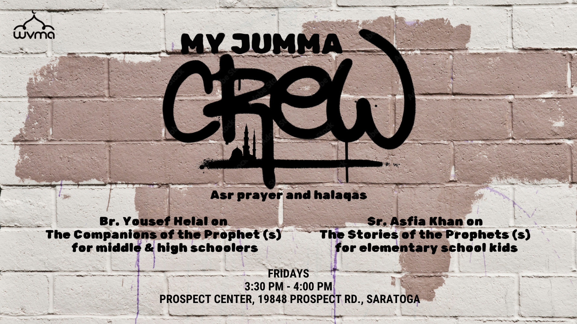 Join us every Friday at Prospect Center for Asr prayer, followed by two inspiring halaqas: