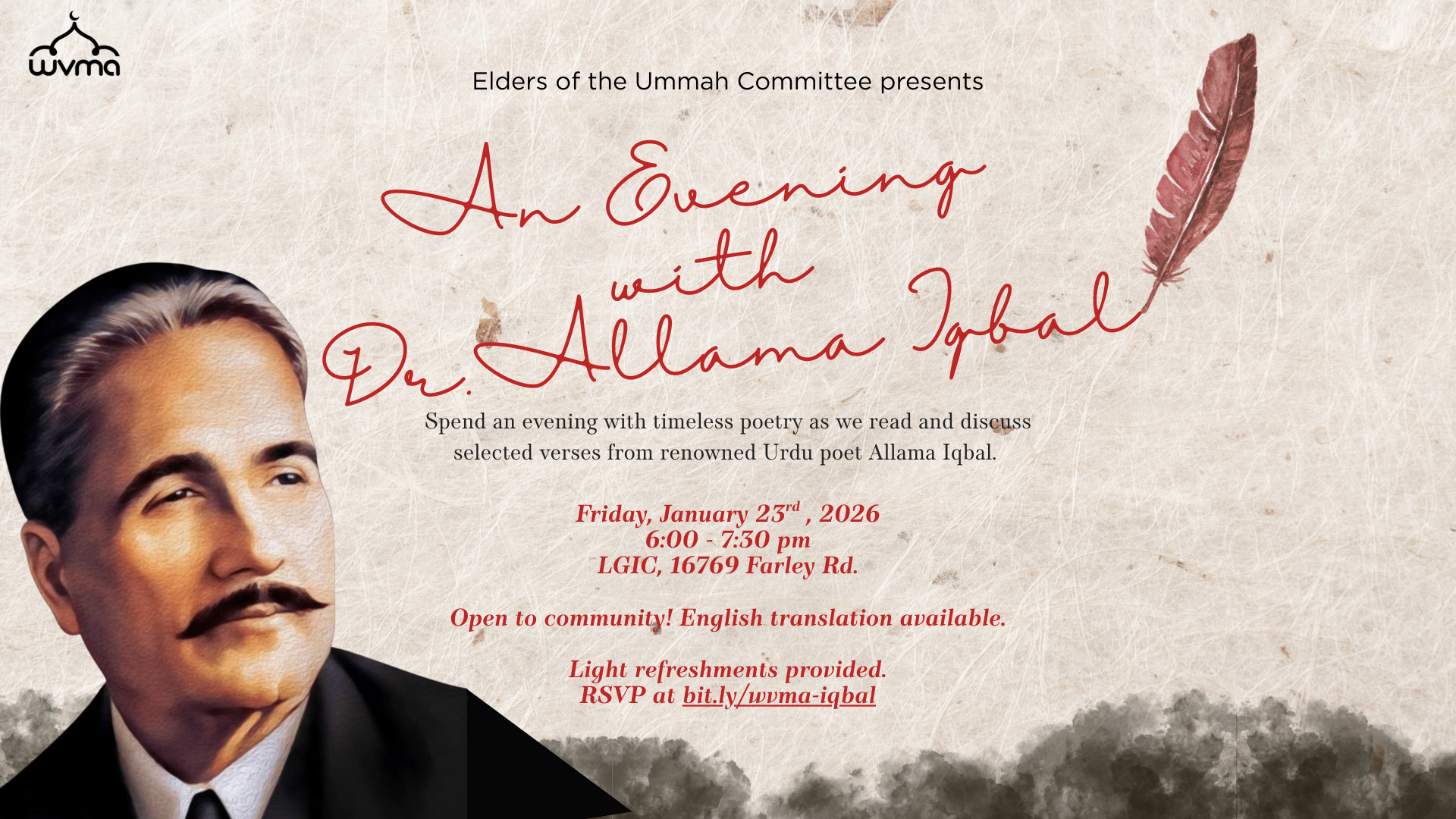 Spend an evening with timeless poetry as we read and discuss selected verses from the renowned Urdu poet...