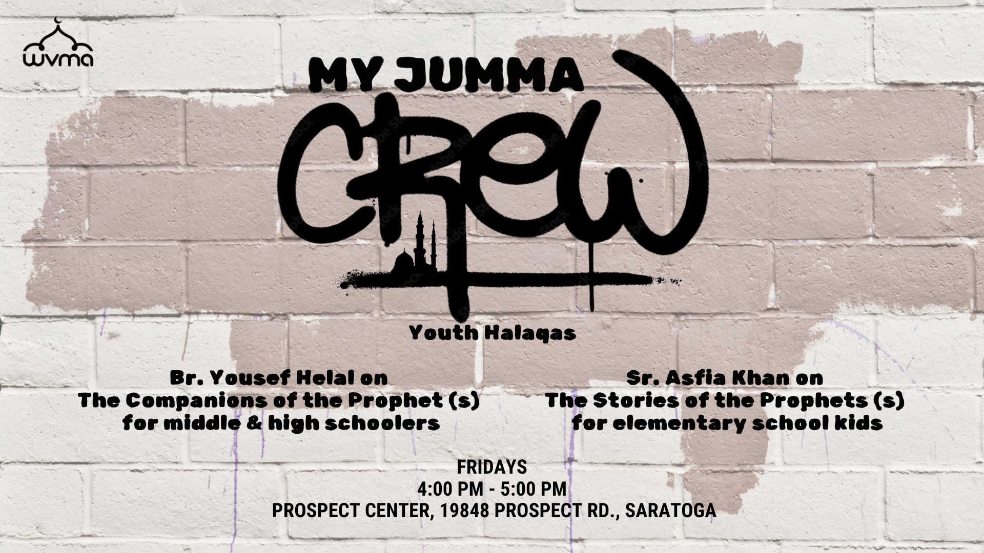 Jumma Crew is Back! Calling all youth! Join us every Friday at Prospect Center for two inspiring halaqas: